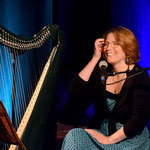 Au son de ses deux harpes (une petite harpe bardique et une harpe celtique rouge), Vanessa Gerkens emporte son public avec poésie et humour dans un univers de légendes et de créatures fantastiques.